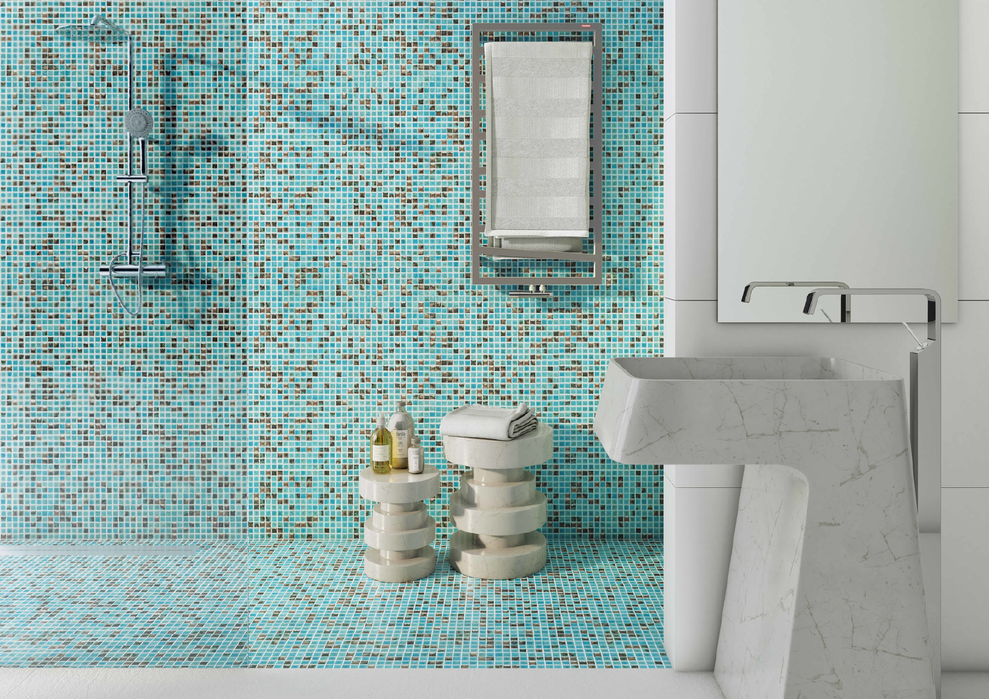 | Značka: | Kerion Značka Kerion neustále vyvíjí inovativní řešení. Mozaiky a obklady vyrábí za využití udržitelných technologií. Do produktových řad řadí mozaiky s různými tvary a texturami, obohacené o kovové povrchy s vysokou odolností pro vnitřní i venkovní prostředí či cementové dlaždice vyráběné za pomoci nových technologických přístupů. Cílem společnosti je nově definovat řemeslnou práci, využít moderní technologie a vytvářet výrobky, které budou jedinečné a nezaměnitelné. | Kolekce: | Luxor |