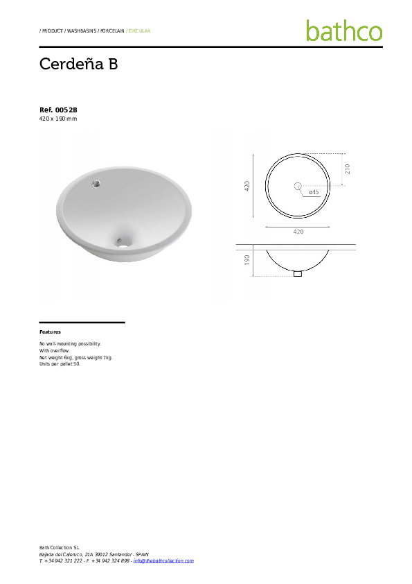 The Bath collection (The Bathco) zaznamenává od roku 2002 úžasný úspěch jak na domácím španělském trhu, tak i v mezinárodním měřítku. Dnes dodává přes 300 výrobků do více než 60 zemí celého světa. Díky Perfecto design je Česká republika jednou z nich. Umyvadla, toalety i příslušenství splňují přísné požadavky na kvalitatu, design i cenu. The Bath Collection nachází inspiraci v přírodě a oporu v nejmodernějších technologiích a novátorském přístupu. Mezinárodně uznávaný tým designérů (Dhemen, Anima, Salvador Pascual nebo Marcelo Alegre) rád přijímá výzvy přírodních materiálů jako je keramika, sklo, pryskyřice a kov. Výsledkem je působivý design, na kterém je stále co objevovat a obdivovat.