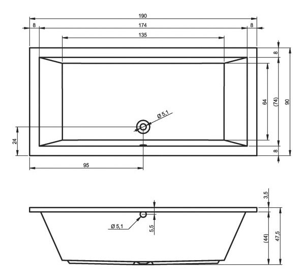 | Lesklost povrchu: | lesk | Okraj vany: | Standardní |