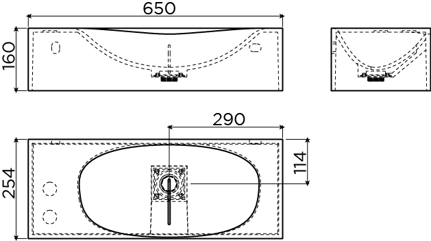 Umyvadlo HAMMOCK 650 x 254 x 160 | na desku nebo závěsné | bílé mat