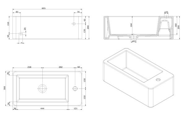 Bílý kvádr ukrývá uvnitř menší kvádr, který tvoří samotnou mycí plochu sympatického umyvadla na desku Note. Vnitřní část je posunutá k pravé straně, aby na prodloužené bočnici zbyl prostor pro vodovodní baterii a možná také dávkovač mýdla. Umyvadlo nabízíme ve dvou rozměrech.