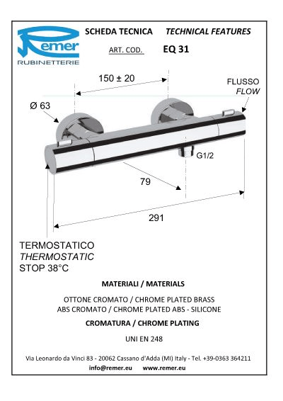 Remer Rubinetterie SpA je lídrem společnosti, která byla založena v roce 1965 v Miláně. Na národní i mezinárodní scéně se pohybuje již 45 let a neustále se přitom vývíjí. Značka má ambice stát se jedničkou v oboru na celosvětové úrovni. Věří, že se jí to podaří díky důrazu na inovace a výjimečné kvalitě. Každému ze zákazníkům značka garantuje původ výrobků, celkovou kvalitu a náskok oproti konkurenci. Firemní filozofie neustálého zlepšování a výběr vysoce kvalifikovaných pracovníků, kteří jsou hrdí na to, že mohou dělat věci nejlepším možným způsobem, jsou atributy, které se naplno odráží v jednotlivých produktech. Značka dodává své vodovodní baterie do více než 130 zemí celého světa.